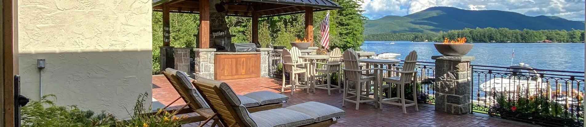 From here, you are steps away from 45 feet of a private beach with Adirondack chairs, loungers, and a paved-seating area off the sandy beach. Enjoy the beautiful Adirondacks while sitting around the custom-made fire pit. Bolton Manor offers direct lake access with dock space for four boats (up to 30′ long), four kayaks, and two paddleboards.